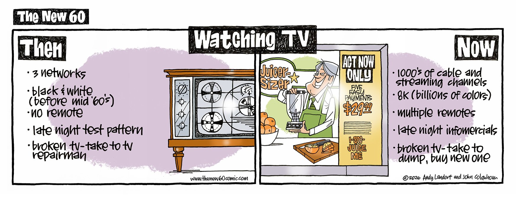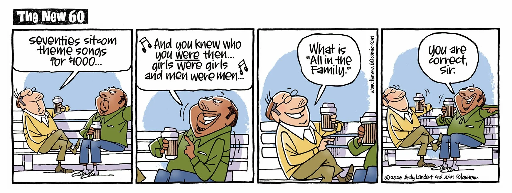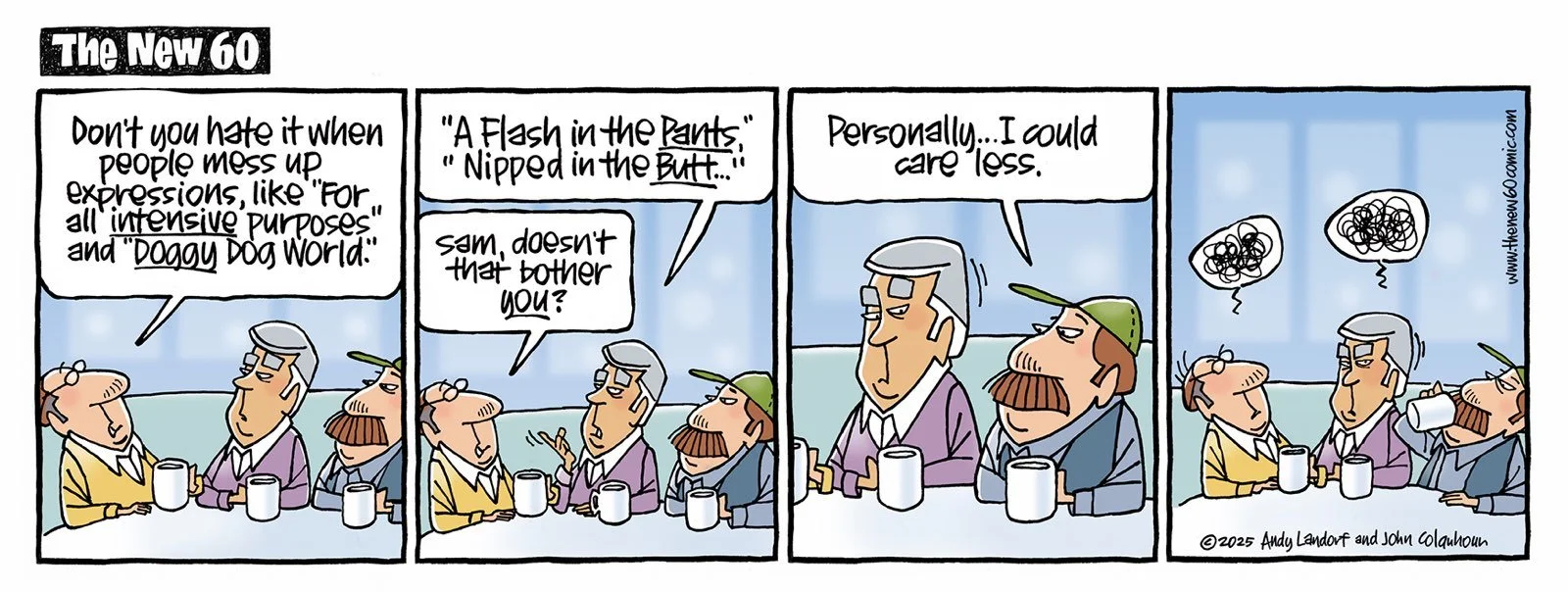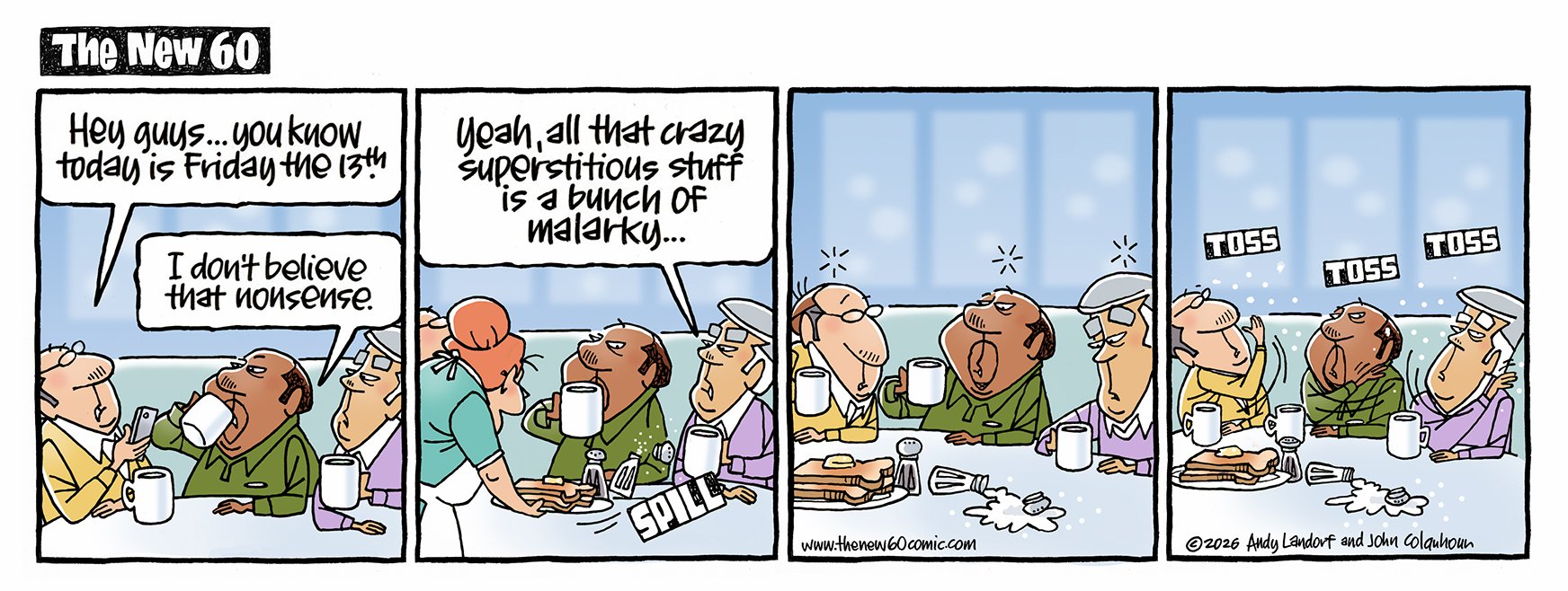If you ARE 60, approaching 60, used to be 60, know someone who's 60, once bowled a 60... this comic strip is for you. Created by Andy Landorf and John Colquhoun- new cartoons every Tuesday and Friday.