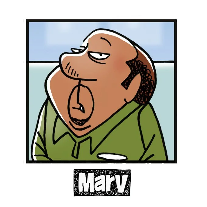 He’s got a Bull Terrier he named Bird, after jazz saxophonist Charlie “Yard bird” Parker. Marv loves to travel, loves to eat, and his favorite vacations often combine the two. Marv is a sucker for the latest diet or weight loss trend- he once spent two weeks on the “Cabbage Diet.” He didn’t lose any weight and the guys made him sit in a separate booth at the diner.