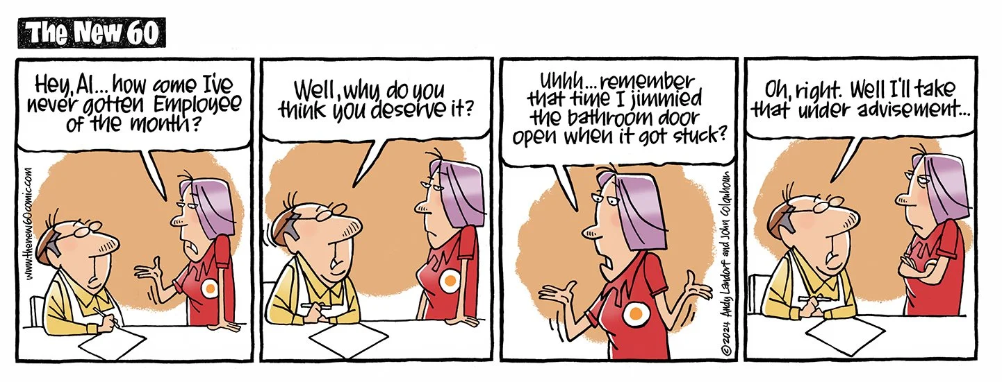If you ARE 60, approaching 60, used to be 60, know someone who's 60, once bowled a 60... this comic strip is for you. Created by Andy Landorf and John Colquhoun- new cartoons every Tuesday and Friday.