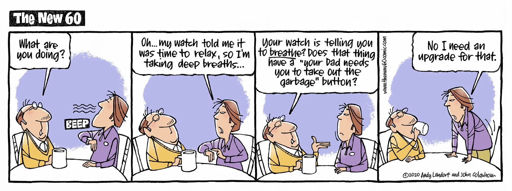 Search for The New 60 Comic by keyword (for example: biking, Netflix, phone plan, glasses)