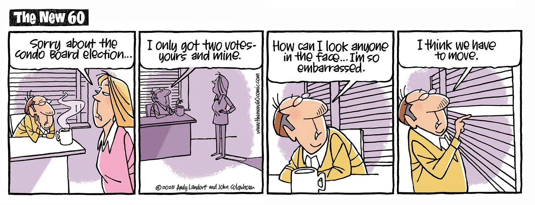 If you ARE 60, approaching 60, used to be 60, know someone who's 60, once bowled a 60... this comic strip is for you. Created by Andy Landorf and John Colquhoun- new cartoons every Tuesday and Friday.