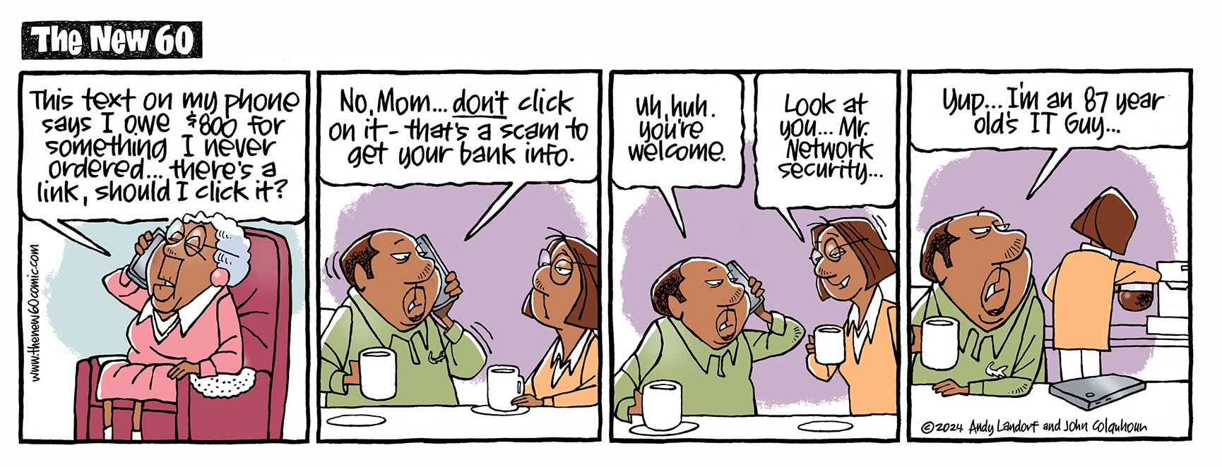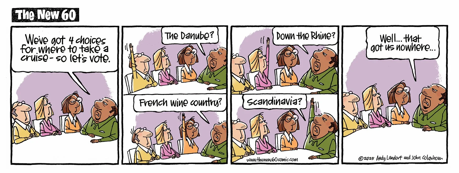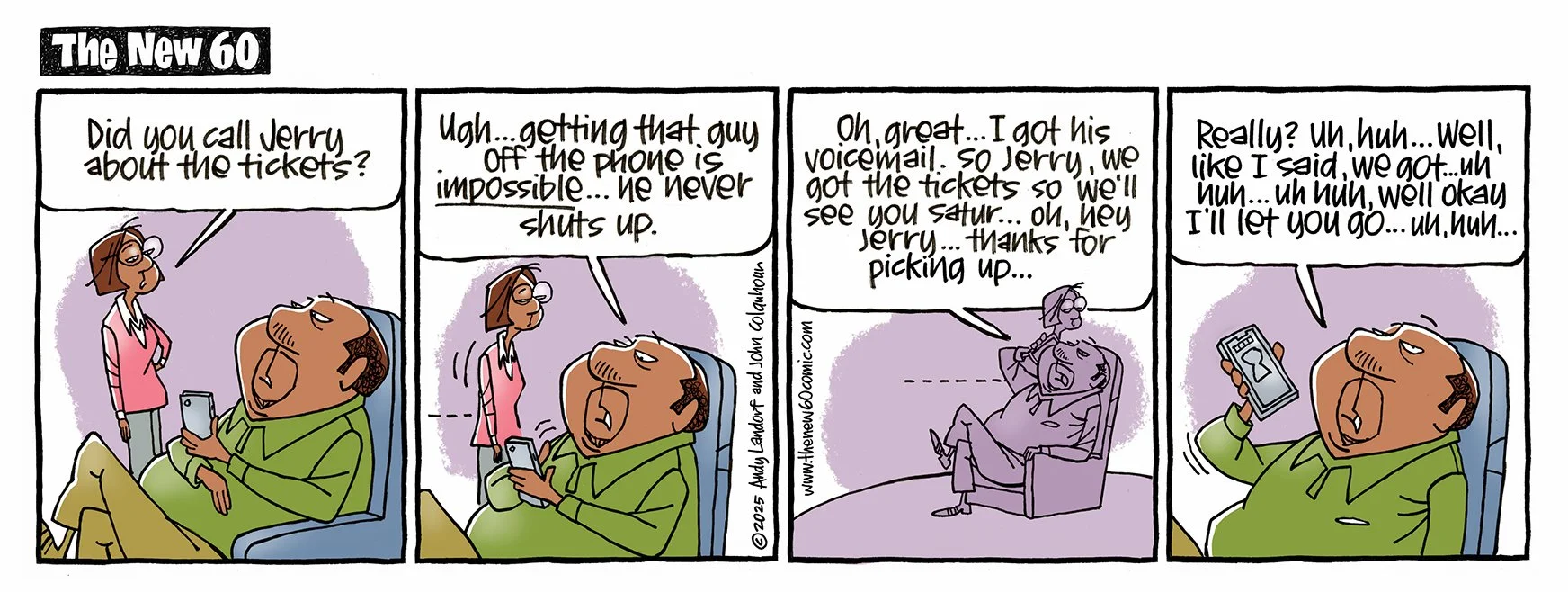If you ARE 60, approaching 60, used to be 60, know someone who's 60, once bowled a 60... this comic strip is for you. Created by Andy Landorf and John Colquhoun- new cartoons every Tuesday and Friday.