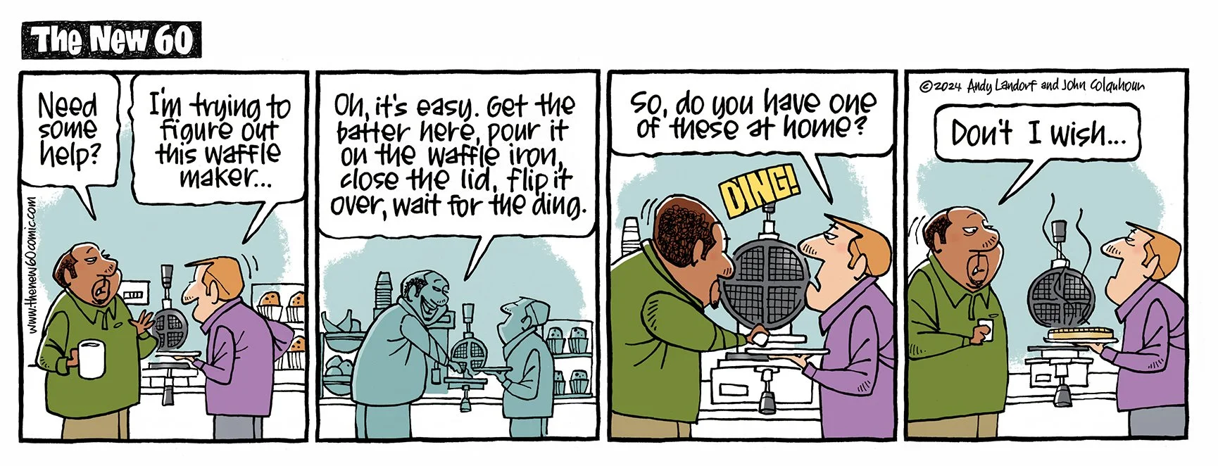 If you ARE 60, approaching 60, used to be 60, know someone who's 60, once bowled a 60... this comic strip is for you. Created by Andy Landorf and John Colquhoun- new cartoons every Tuesday and Friday.