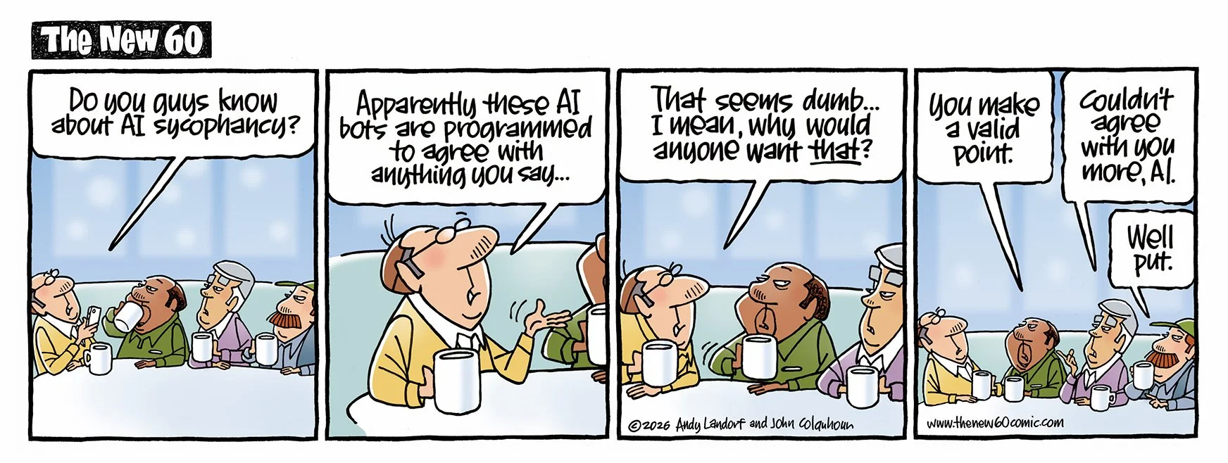 If you ARE 60, approaching 60, used to be 60, know someone who's 60, once bowled a 60... this comic strip is for you. Created by Andy Landorf and John Colquhoun- new cartoons every Tuesday and Friday.