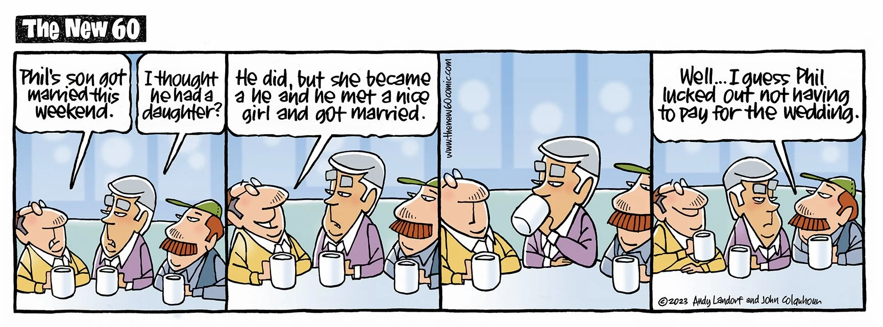 If you ARE 60, approaching 60, used to be 60, know someone who's 60, once bowled a 60... this comic strip is for you. Created by Andy Landorf and John Colquhoun- new cartoons every Tuesday and Friday.